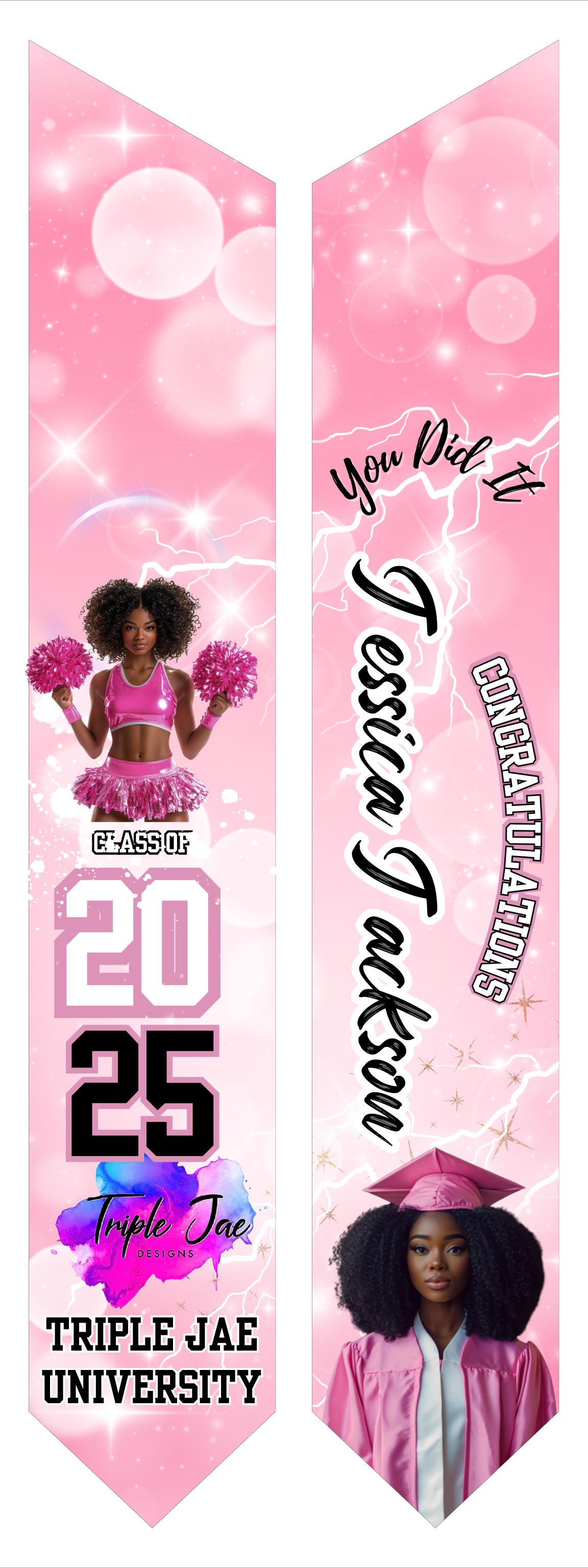 In the notes section at checkout---> Add your graduates name, school colors, design description (ex. Pink stole format) and any additional details
