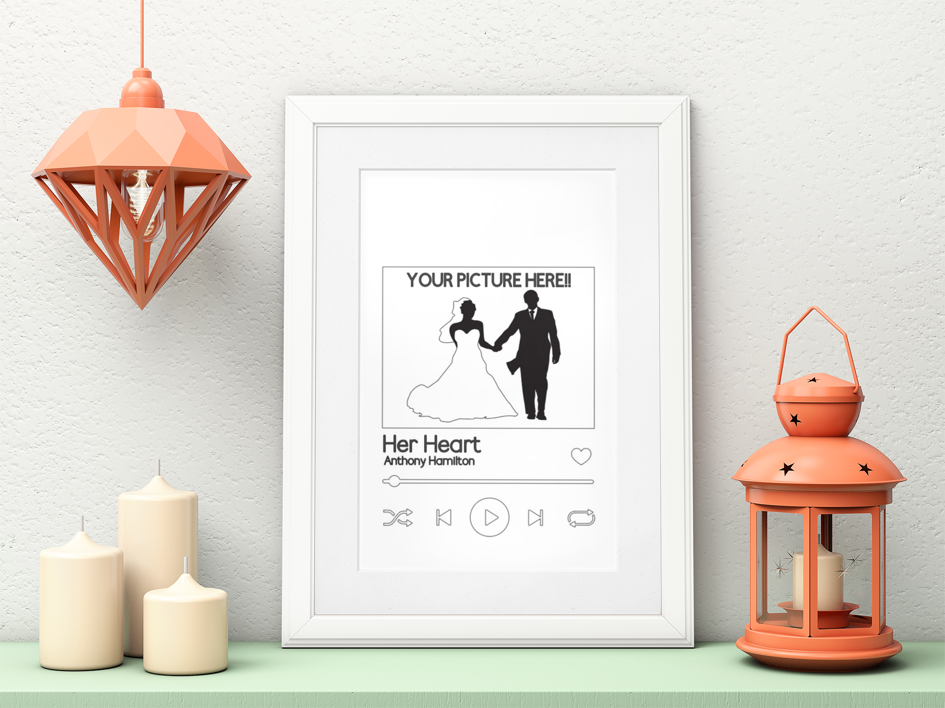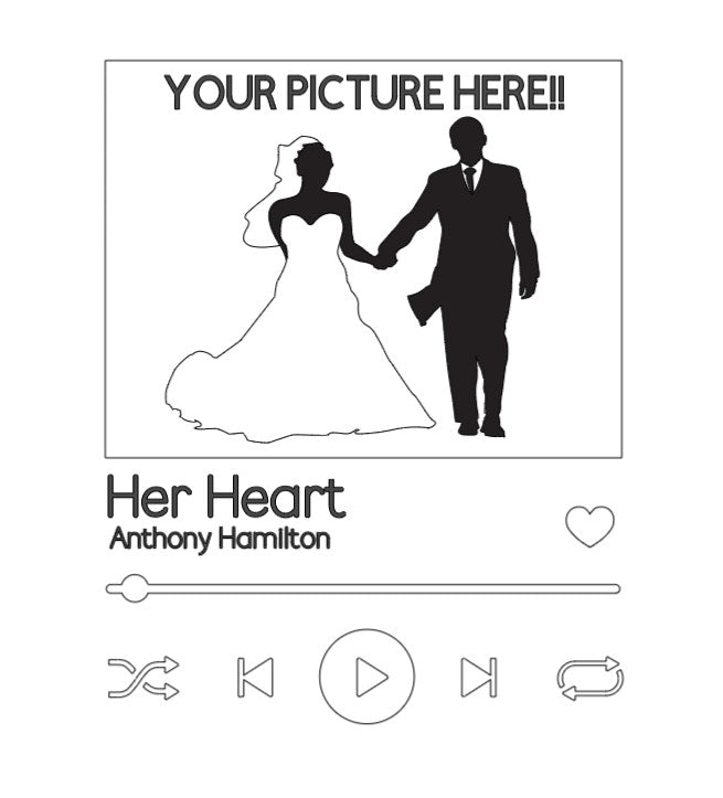 Display this frame that shares your Love story; your favorite picture together, the day you met, your favorite song and your names (optional)