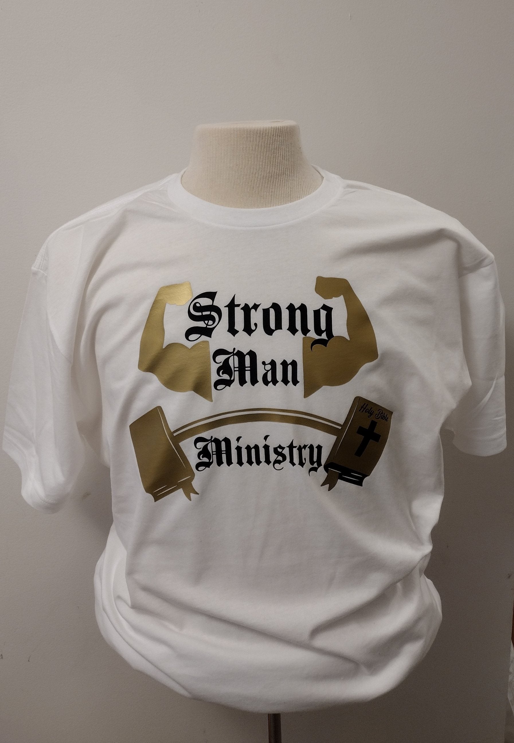 This shirt is specifically custom made for the "Strong Man Ministry" led by Elder Patrick.